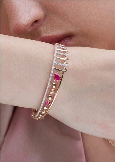 Every gold piece is crafted with a high-quality alloy that offers a perfect balance of strength and shine. Our designs are set in precisely engineered 18KT and 22KT gold, giving each piece exceptional brilliance, scratch resistance, and long-lasting elegance.