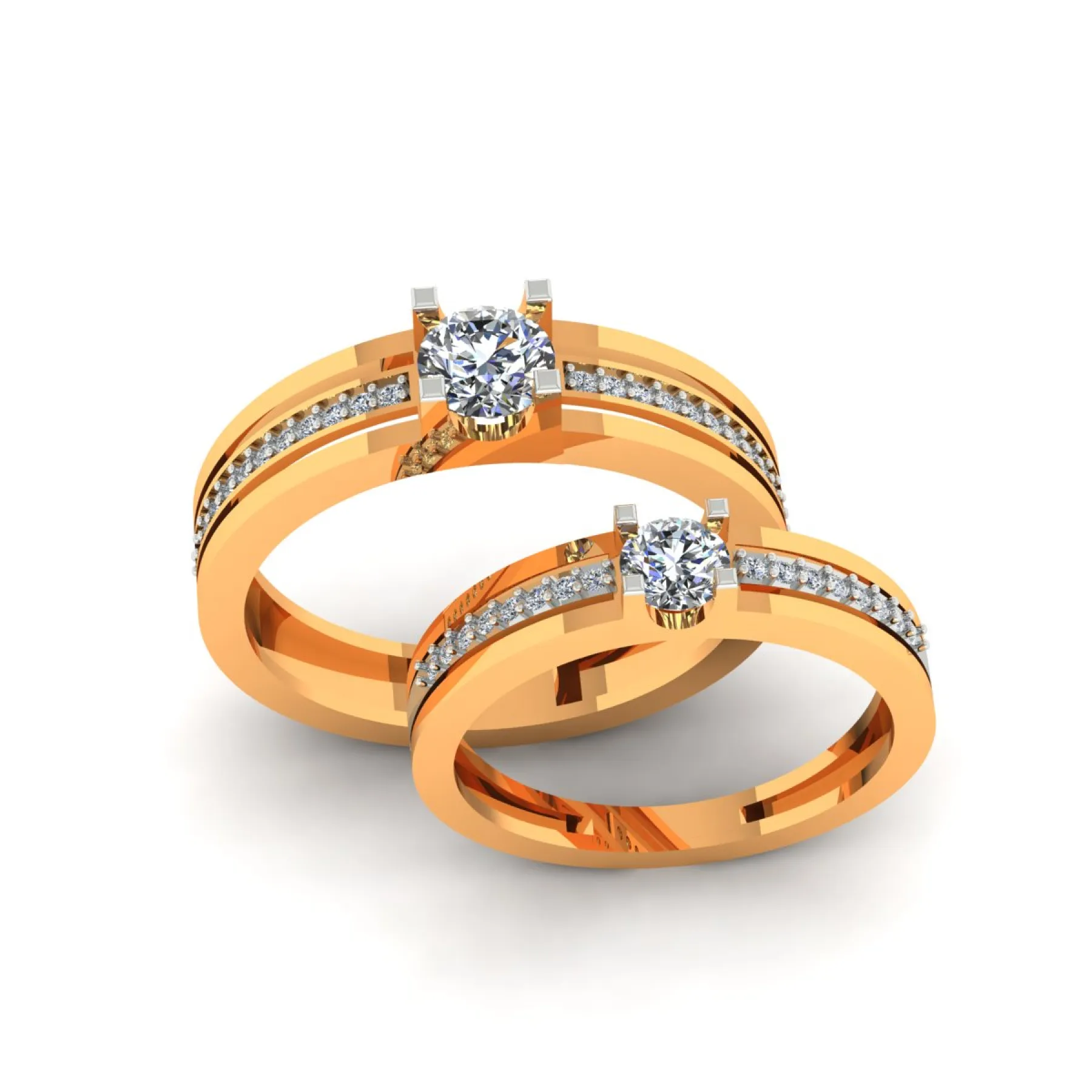 A fusion of modern romance and graceful, minimal design. Crafted from high-polish dual-tone gold featuring a delicate, slatted heart motif. Each piece elegantly cradles a single, brilliant-cut diamond set in contrasting white gold. This refined, matching set offers subtle sparkle and enduring sophistication